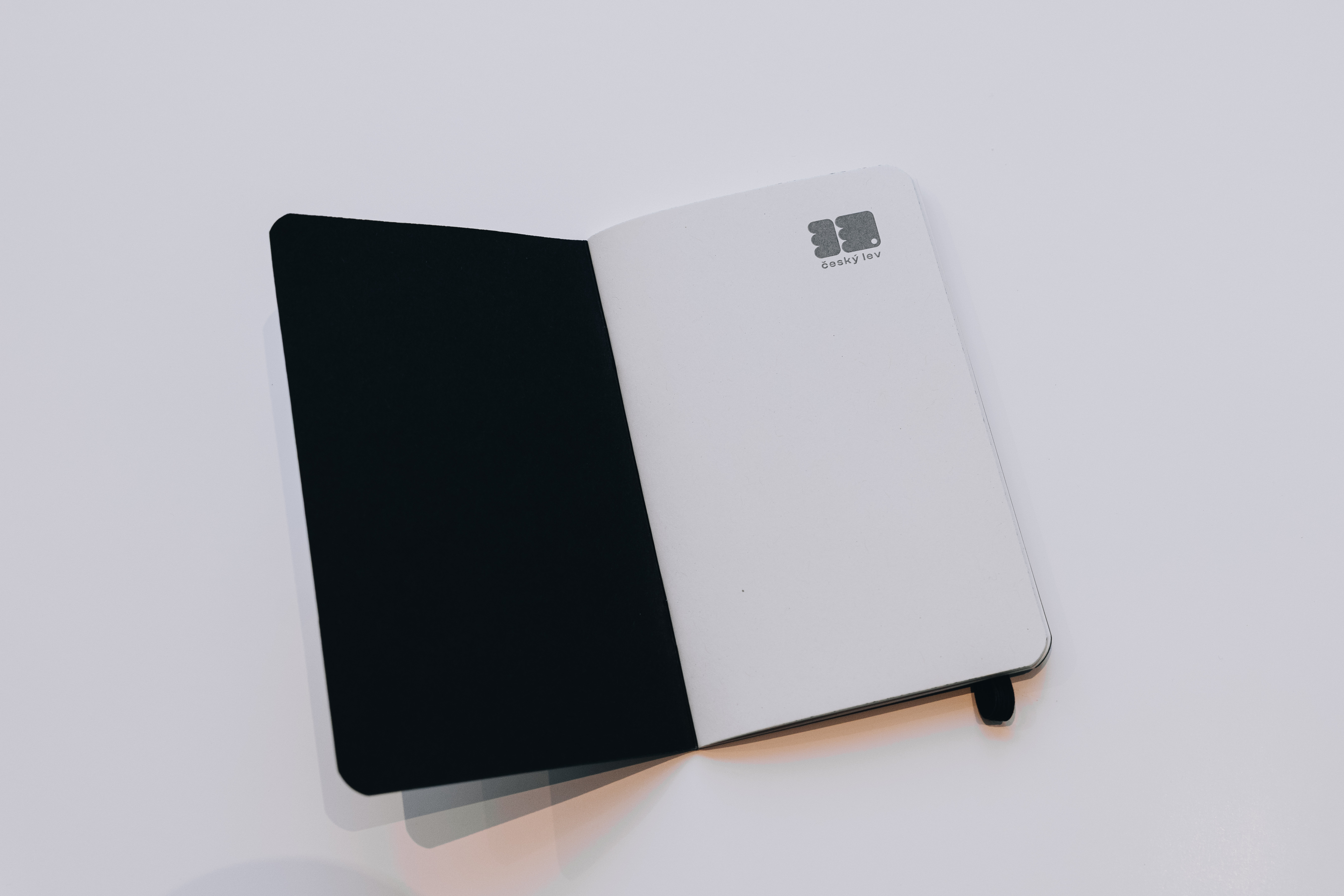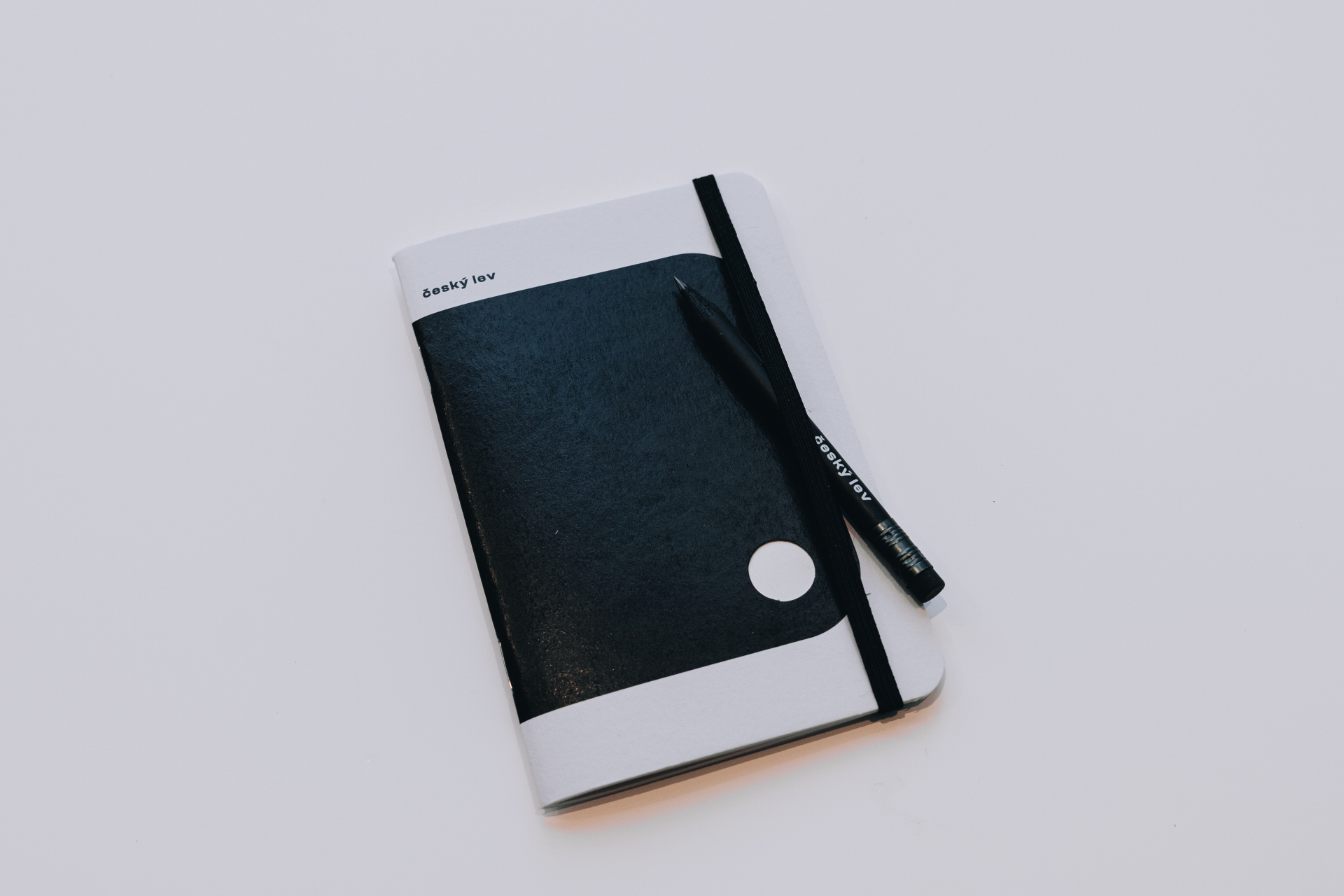 Černý bloček s gumičkou a natur tužkou s nápisem Český lev